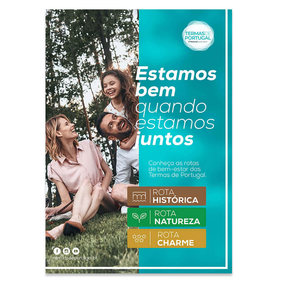 In the beginning we were only to develop and implement a new campaign for Termas de Portugal, but it became an opportunity to propose a new identity for Termas de Portugal, giving it a lighter and younger look, without losing its essence.